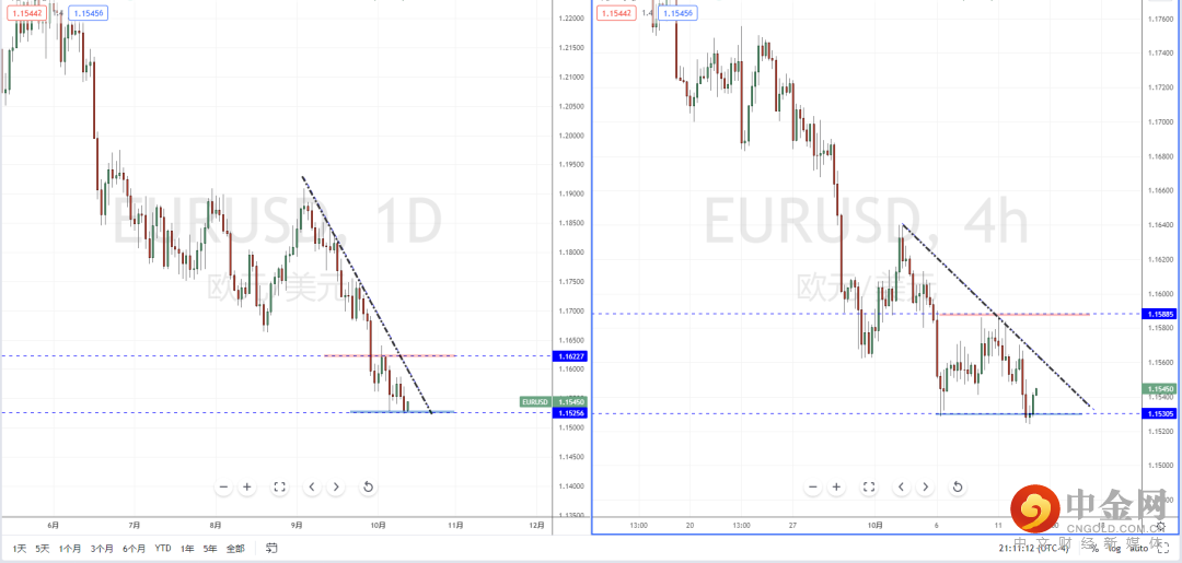 欧美天图:现阶段整体趋势虽然在下降趋势线的压制作用下继续受阻,但短期因美元指数在关键位置回落,使得欧美再次止跌。从日内4小时级别,价格在测试下方短期水平支撑带1.15305附近止跌反弹。近期可适当关注价格调整后继续上行反弹的多头机会,上方反弹目标位置参考1.15612附近。