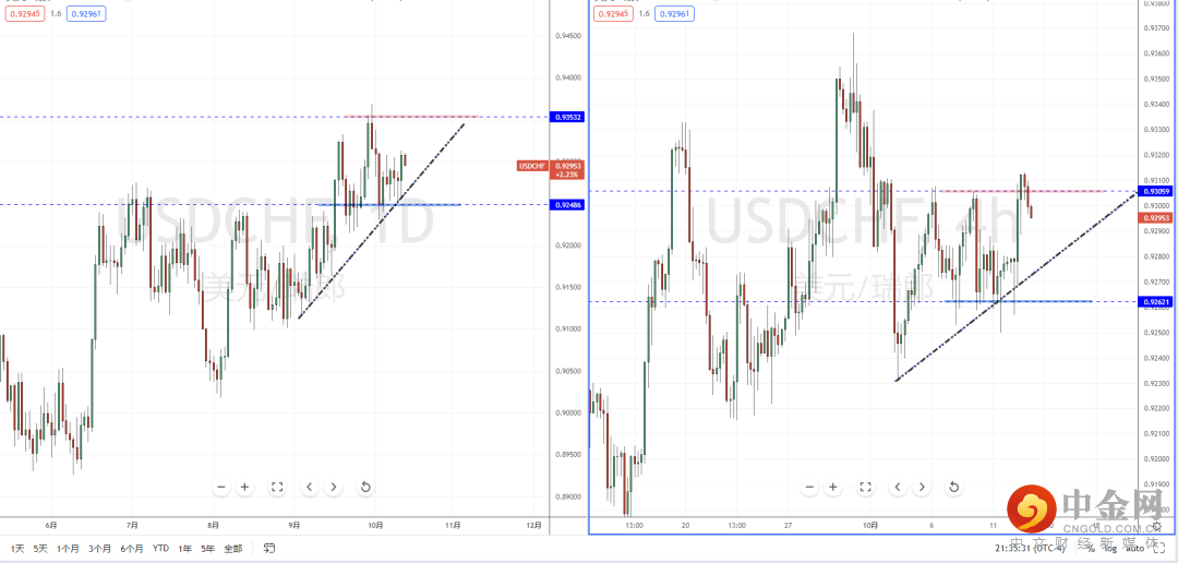 美瑞天图:短期趋势继续处于在纠结之中,虽然下方有上升趋势线的支撑作用,以及水平支撑带在0.92486附近。但从日内4小时级别,价格在冲击上方区间压制区域继续受阻,短期可适当关注价格调整后回落空机会,需要注意下方的空间幅度,其目标位置参考0.92777附近。