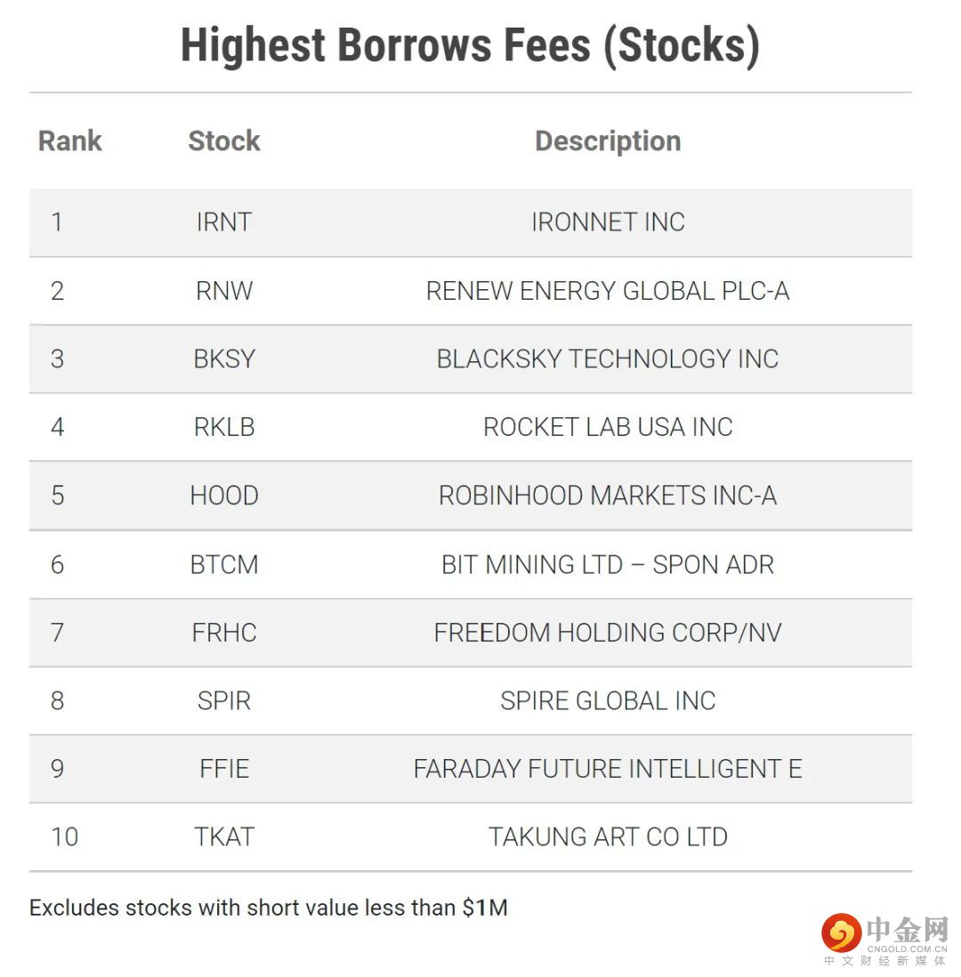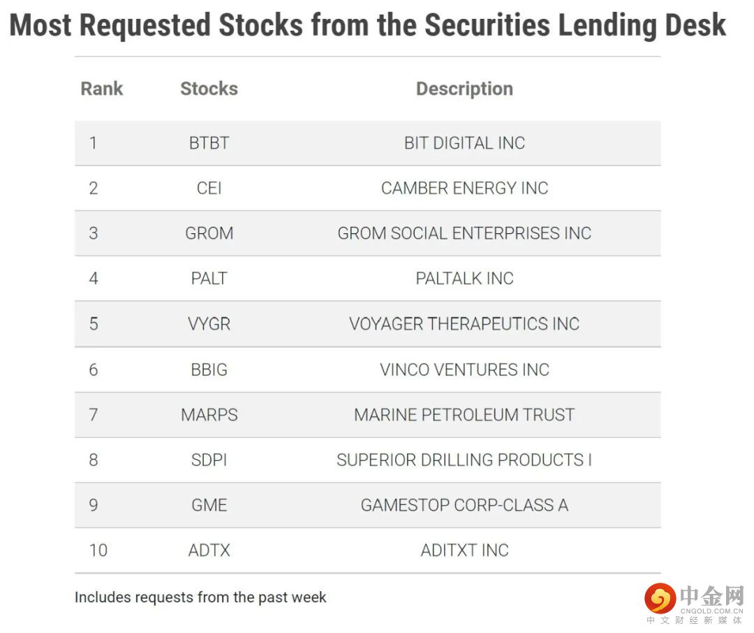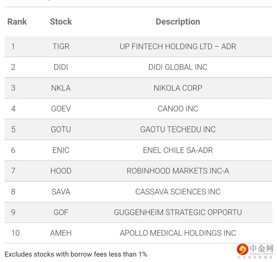 下表中列出的是2021/10/07 具有最大做空值的10个证券。