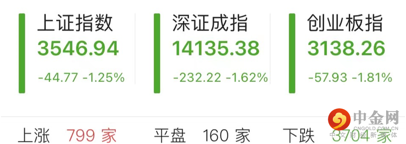 10月12日,三大指数再度深跌,个股跌多涨少。截至收盘,沪指收报3546.94点,跌幅1.25%;深成指收报14135.38点,跌幅1.62%;创业板指收报3138.26点,跌幅1.81%。股指期货方面,沪深300期指IF2110跌幅1.26%,上证50期指IH2110跌幅0.66%,中证500期指IC2110跌幅2.02%。盘面上,医美、房地产、三胎、养老等板块领涨,PVDF、鸿蒙、钢铁、燃气等板块跌幅靠前。个股方面,两市共54股涨停(含ST),18股跌停(含ST)。