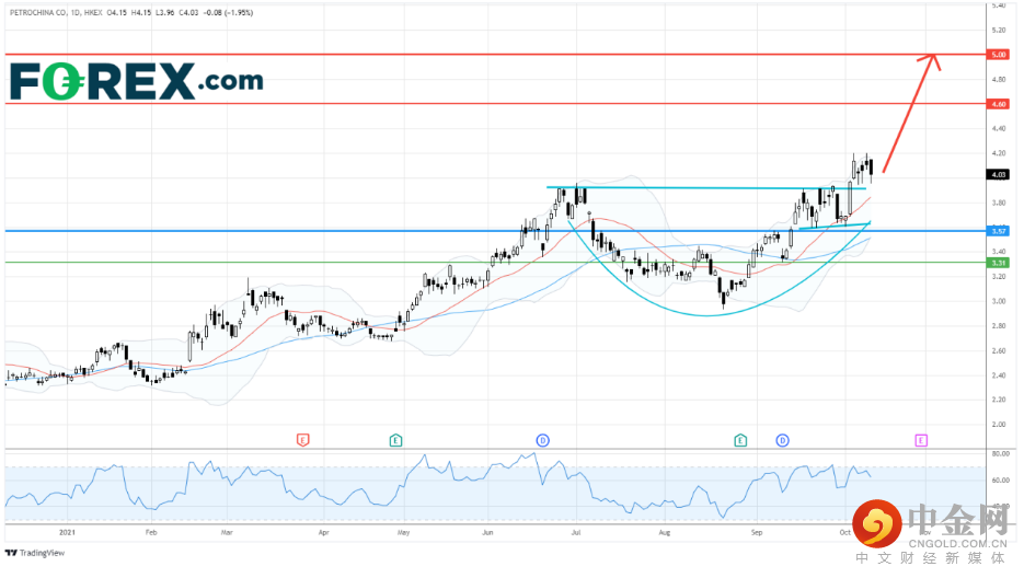 中国石油巨头 中国石油股份 (857.HK) 受惠于原油价格上涨,股价年初至今上升接近7成并保持在52周高位的附近交投,表现远胜恒生指数。