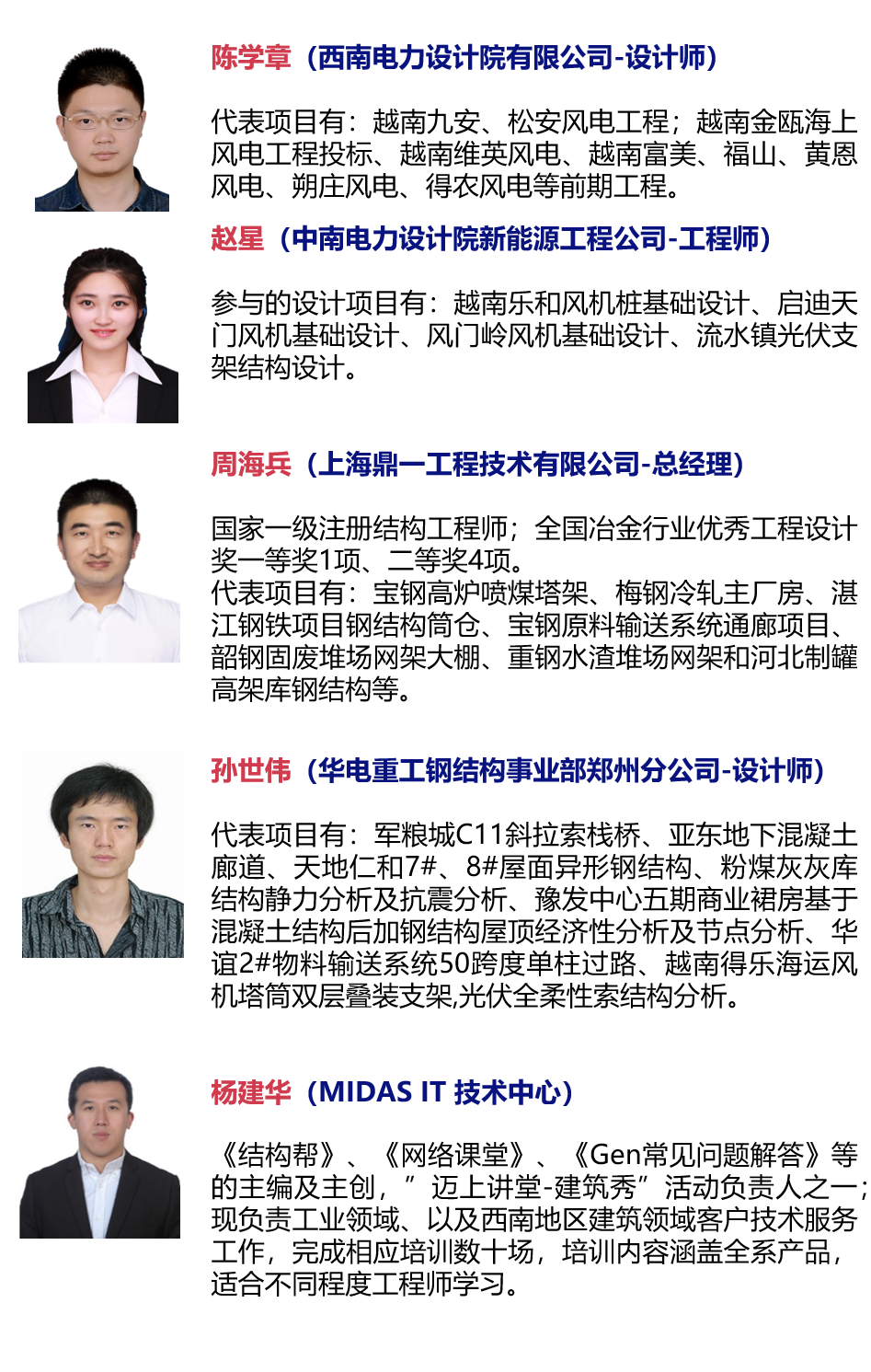 首先由MIDAS公司的杨建华老师整体梳理了MIDAS公司在新能源领域的整体解决方案(点蓝色文字获取课件),MIDAS软件能够处理各种陆上风机基础和光伏支架项目,今年我们发布了midas Gen2021版本添加了非常实用的波浪荷载功能,为做海上风电基础的工程师提供了便利;第二部分由中南电力的赵星赵老师给大家分享中南电力在陆上风电基础和光伏支架相关的案例,赵老师使用midas Gen和midas FEA两款软件相互配合完成了院里面一些列新能源工程,将整个设计流程通俗易懂的为大家展现出来;第三部分是上海鼎一的周海兵周大师为大家呈现了一个近些年一直非常火热的光电集热塔项目,二次反射技术是将太阳光经定日镜反射到二次反射装置,再经二次反射装置聚焦位于地面的吸热器上,通过盐城试验项目,得到的大量数据,进一步验证了其技术优越性,为后期的大型商业应用提供工程实践经验;第四部分由华电重工的孙世伟孙老师讲解了目前各大设计院正在研究的柔性光伏支架项目,孙老师对拉索结构的研究比较透彻,通过各种索型调整得到最优的方案,最后由西南电力的陈学章陈老师将海上风电基础的设计要点和流程给大家梳理了一下,得到了大家的一致好评。