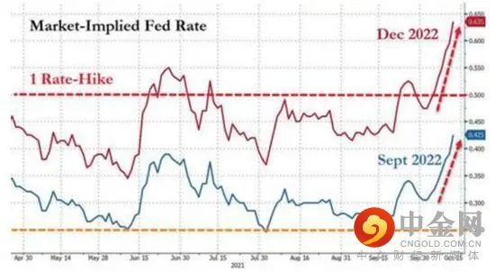 这一加息预期比美联储在9月公布的高官们的点阵图还要快。而此前,基于市场的加息预期,是比美联储高官们更鸽派的。而美联储本身的预期也比今年早些时候显示加息会提前。