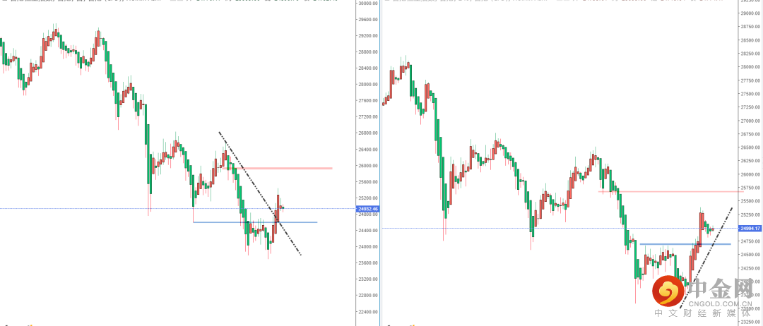恒生指数天图:目前整体趋势继续保持多头方向,短期价格在有效突破下降趋势线后进入小幅调整,下方水平支撑带在24707.24附近。从日内4小时级别,可关注价格回测上升趋势线与水平支撑带附近再次起稳的多头机会,上方区间目标位置参考25641.47附近。