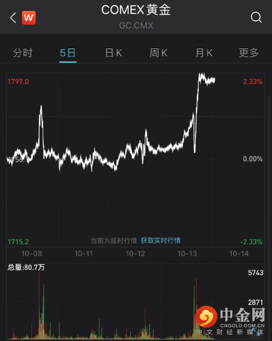美联储还上调了通胀预期,最新公布的CPI指标也创下30年新高,通胀担忧下黄金价格飙升。