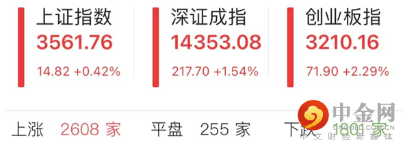 10月13日,三大指数集体回暖,个股涨多跌少。截至收盘,沪指收报3561.76点,涨幅0.42%;深成指收报14353.08点,涨幅1.54%;创业板指收报3210.16点,涨幅2.29%。股指期货方面,沪深300期指IF2110涨幅1.48%,上证50期指IH2110涨幅1.32%,中证500期指IC2110涨幅0.74%。盘面上,教育、白酒、汽车、鸿蒙等板块领涨,燃气、电力、玉米、煤炭等板块跌幅靠前。个股方面,两市共79股涨停(含ST),56股跌停(含ST)。