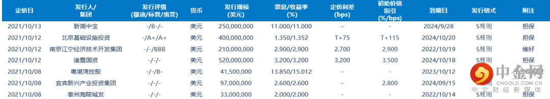 近期新发中资美元债