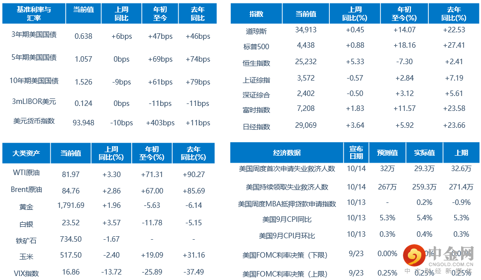 利率汇率:周四公布的美国9月PPI数据涨幅略逊预期,美债收益率自周四纷纷从高位回落。不过,随着市场越来越多的人开始谈及通胀上行的风险,同时美联储官员持续为缩减QE造势,美债市场的整体情绪依然谨慎。