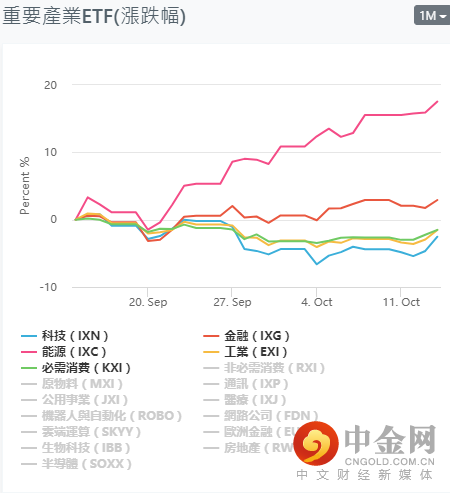 目前市场环境短期有所缓解,美股三大指数大涨,其中标普500指数等继续保持向上趋势。另外,因为隔夜公布的就业和通胀数据缓解了市场对加息前景的担忧。美国银行、摩根士丹利等银行股,以及联合健康等公司在公布强劲业绩后攀升。从ETF产业的表现,目前市场虽处于分化中,但弱势产业短期也有逐步拐头上行迹象。短期关注:科技(IXN)金融(IXG),能源(IXC),工业(EXI),非必须消费(RXI),原物料(MXI),云端运算(SKYY),网络公司(FDN),欧洲金融(EUFN),房地产(RWO)产业中个股的多头机会。