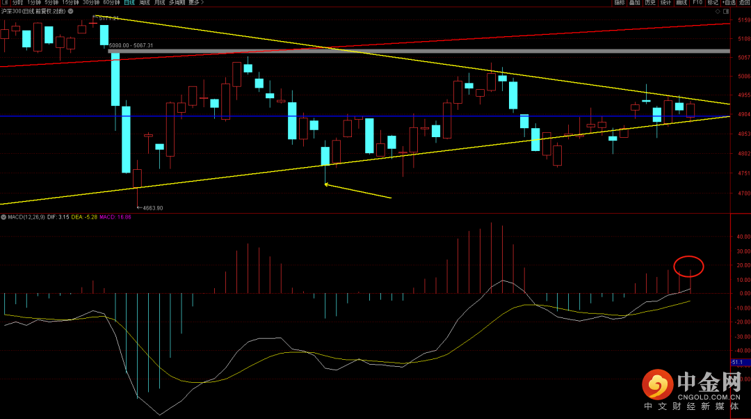 沪深300依旧在收敛末端,短期还是需要关注方向的选择,从周期看周四可能是最后的抉择点,关注周四前的方向选择。