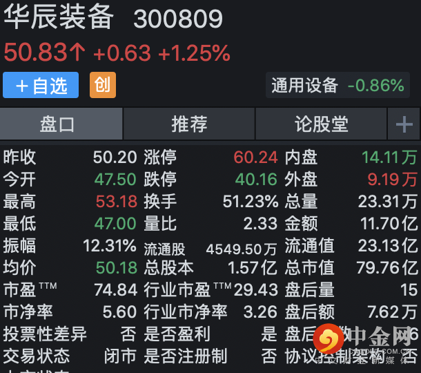 半年报:净资产收益率4.49%,毛利率40.12%,净利润0.64亿,同比增长794.38%,营业收入2.51亿,同比增长503.48%,动态市盈率61.69,目前总市值79.76亿。