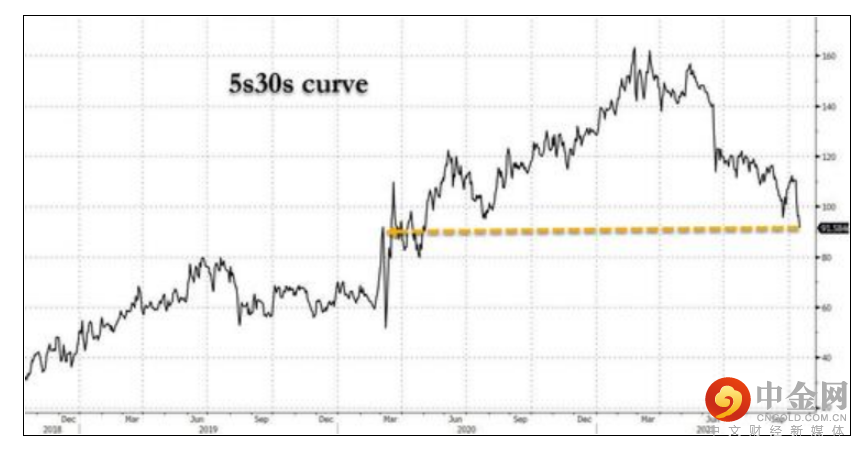 美国银行认为,5年期和30年期美债息差的崩溃表明滞胀或者衰退正在到来。