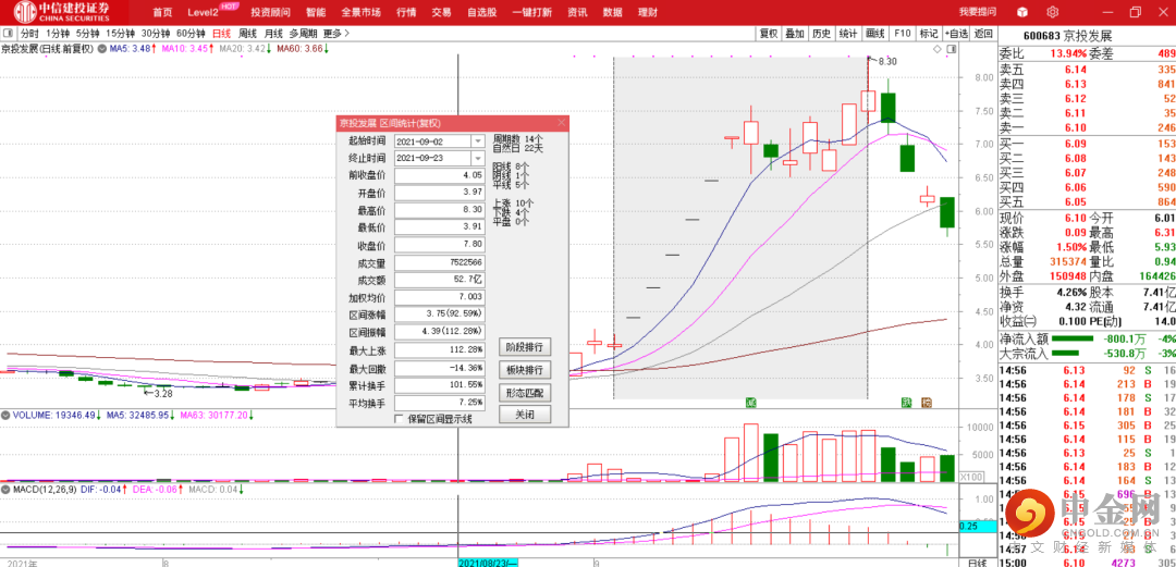 其中,龙头股京投发展短期内出现了翻倍的行情: