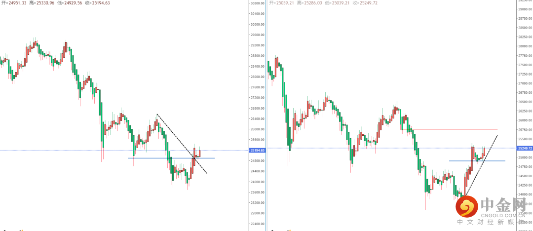 恒生指数天图:短期价格在回测支撑带24963.23附近再次起稳,目前整体格局继续保持多头方向。从日内4小时级别,可关注价格在回测多重支撑区域后起稳的多头机会,上方区间目标位置参考25881.46一带。