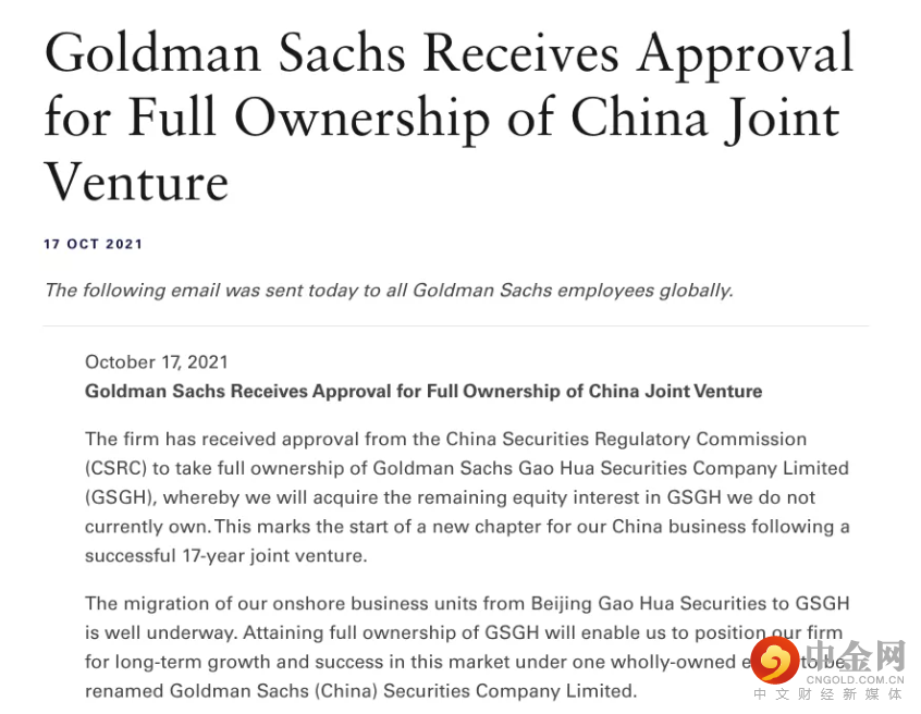 高盛表示,获得高盛高华的全部股权将为高盛在中国的长期发展和成功提供更佳的定位,也标志着高盛在中国成立合资企业的17 年后,展开了新的篇章。