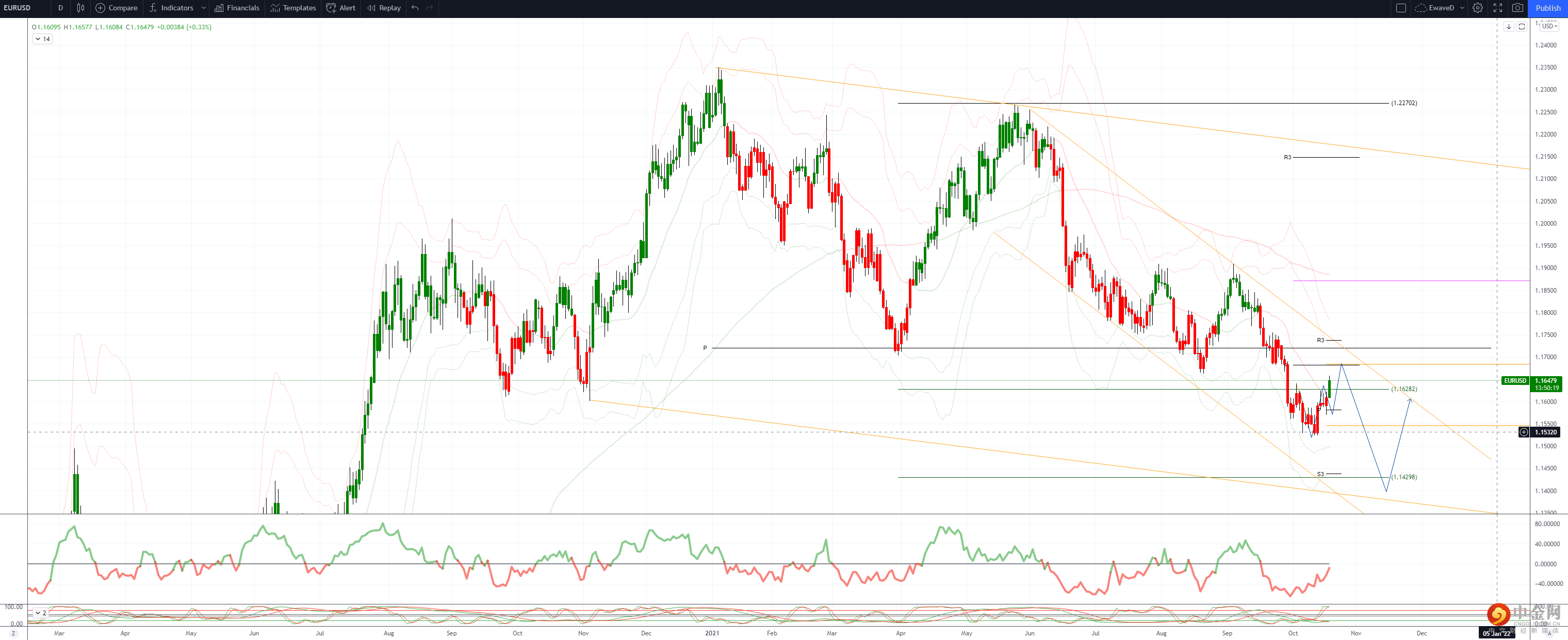 下一个阻力位在 1.1669 的 1.1909/1.1522 的 38.2