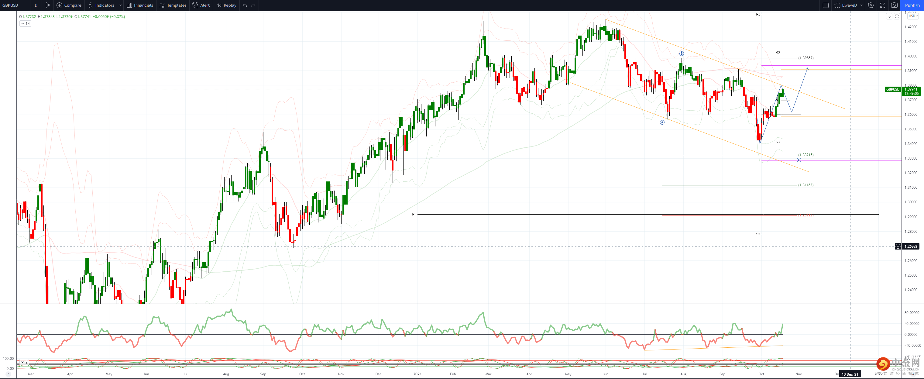 GBPUSD 日内偏差:低于 1.37 看跌 高于看涨。