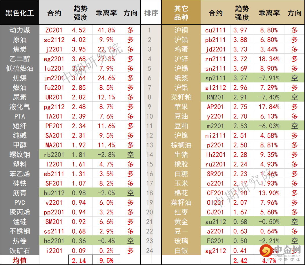 中期商品趋势榜 | 煤油多头风不减,铜铅锌有色多头登榜(1018)