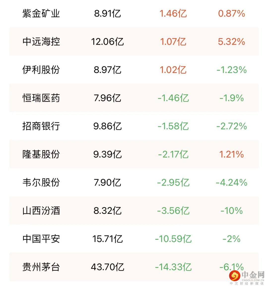 北向资金昨天全天单边净卖出80.18亿元,单日净卖出额创8月20日以来新高。贵州茅台、中国平安、五粮液分别遭净卖出14.33亿元、10.59亿元、6.54亿元;宁德时代、泸州老窖分获净买入7.53亿元、3.02亿元。
