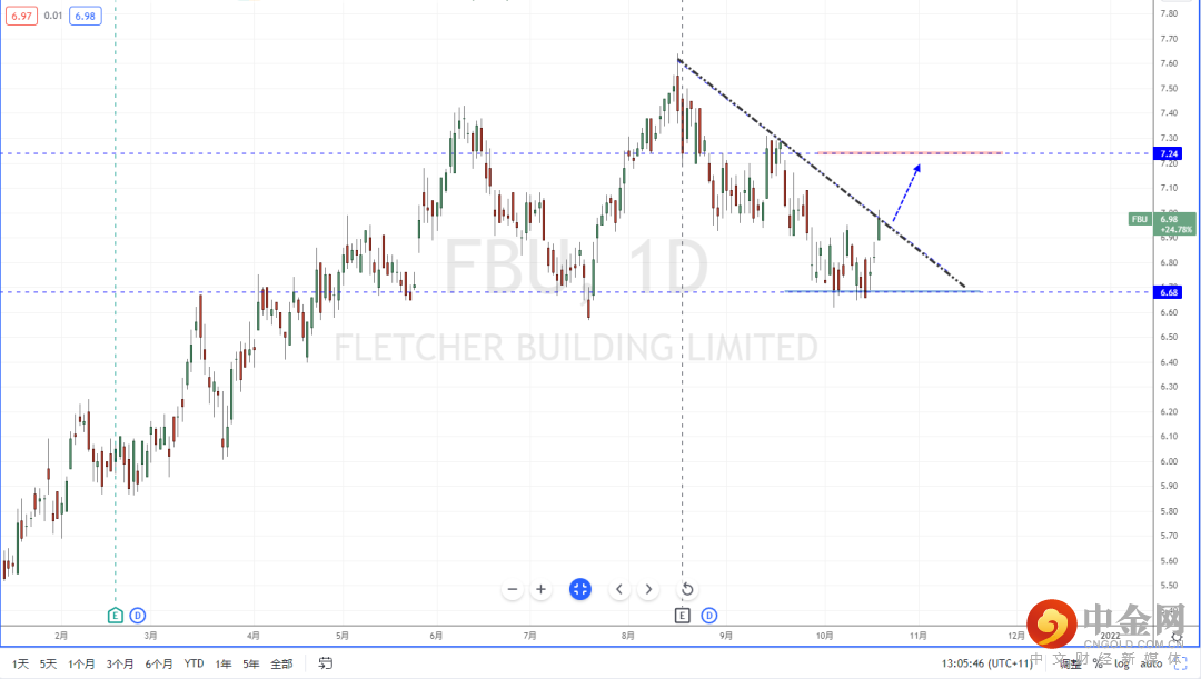 FBU:目前市场环境虽然有所提振人气,但持续性偏弱。从ETF产业的表现迹象其市场趋势有趋平状态。从FBU目前整体趋势在前期测试下方水平支撑带6.68附近止跌,并且价格也继续上行冲击下降趋势线的压制作用。短期可适当关注价格在关键位置调整后上行突破的多头机会,上方目标位置参考7.24一带。