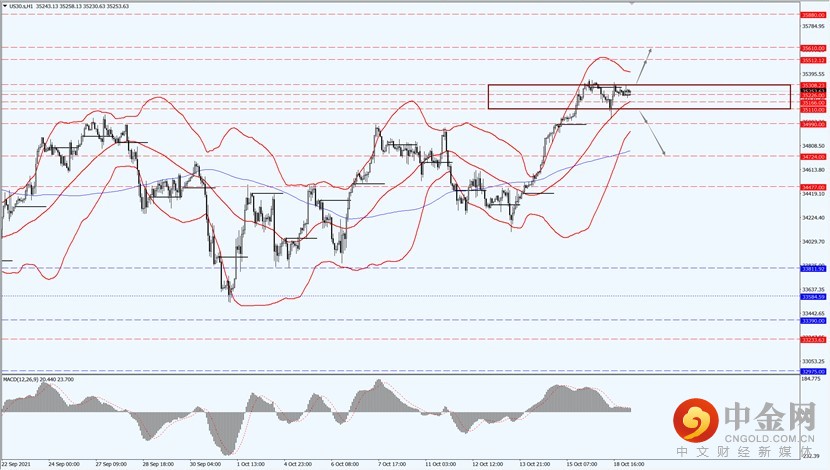 如果向下跌破 35110 一线,则将打开进一步的下行空间,届时关注 34990 和 34724 两个位置的支撑力度。