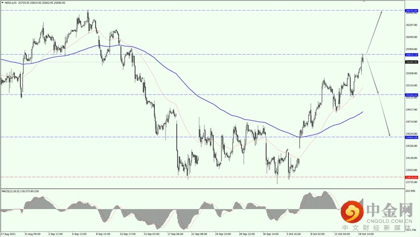 如果 HK50 力度上破 25816 一线,则将打开进一步的上行空间,届时关注 26535 一线的压制力度。