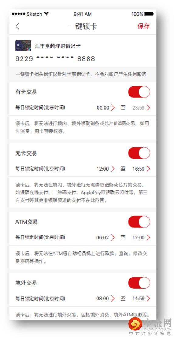 1.由于安全锁使用便捷,平时您不需要用卡的时段和不需要使用的交易都可以“上锁”,进一步提高您借记卡的安全性。