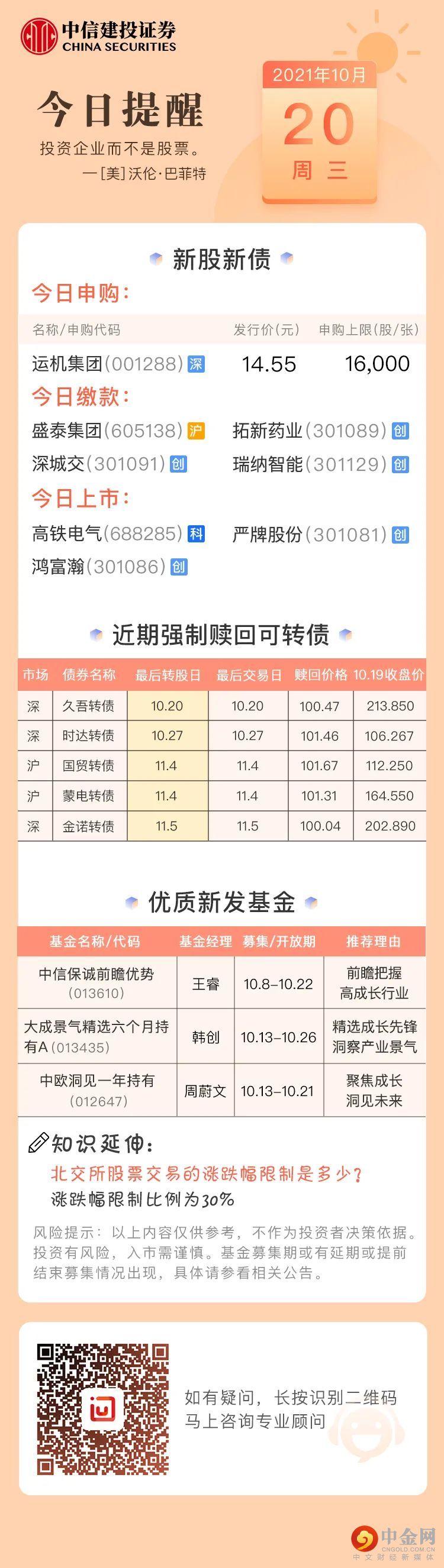 今日投资提醒(10月20日)