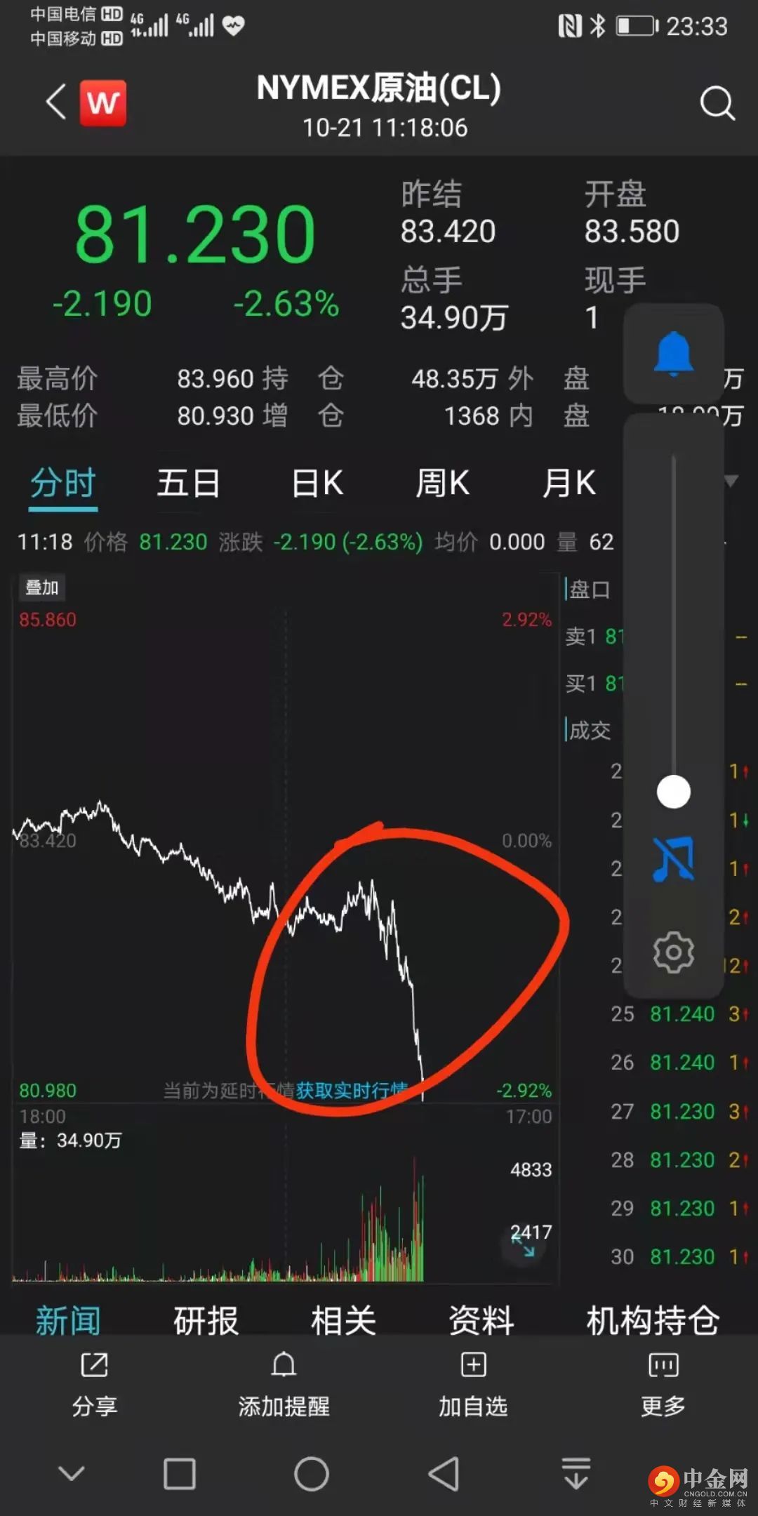 全球经济增长担忧加剧,让油价从超买区域回落,国际油价盘中一度大跌3%,截至今日凌晨收盘,美油收跌1.1%,报82.5美元/桶;布油跌收跌1.41%,报84.61美元/桶。