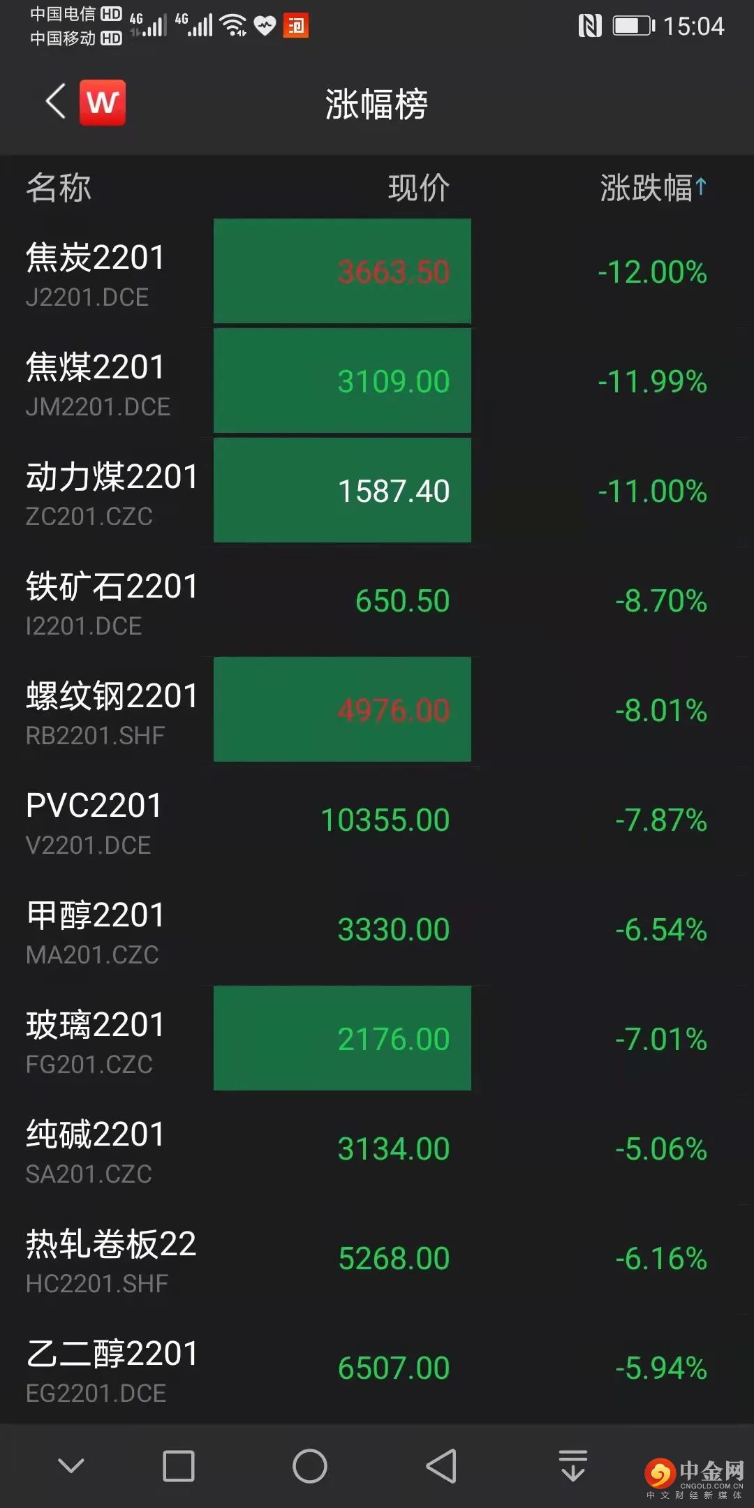 稍前的昨日日盘,跌停品种达5个,焦煤、焦炭、动力煤、螺纹钢、玻璃期货均以跌停收盘。