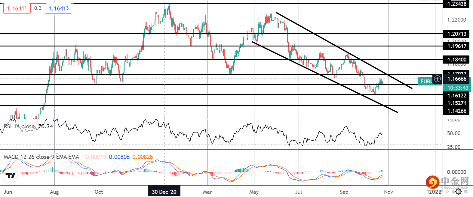 今天发布的 10 月份欧元区服务业增长疲软凸显了单一市场面临的持续问题。如果今天的美国采购经理人指数追踪英国的走势并且看到改善,这可能会在短期内对欧元兑美元造成压力。美联储的鲍威尔今天晚些时候也将发表讲话,交易员将渴望听到有关美联储是否会在短期内缩减规模的任何线索,这可能会因任何鹰派言论再次推低价格。