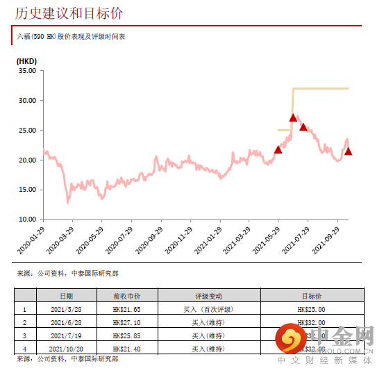 香港特区政府8月推出消费券刺激了公司首两周珠宝首饰的表现,公司对10月第二批消费券推出的效用保持乐观。集团短期侧重香港本地民生区域店,预计在本地消费的支持下,民生区店铺已可录得盈利。疫情前的19及20财年六福的港、澳地区经营利润占比分别高达50.7%及29.8%,我们仍然认为六福可被视为投资香港通关后消费复苏的代表标的。