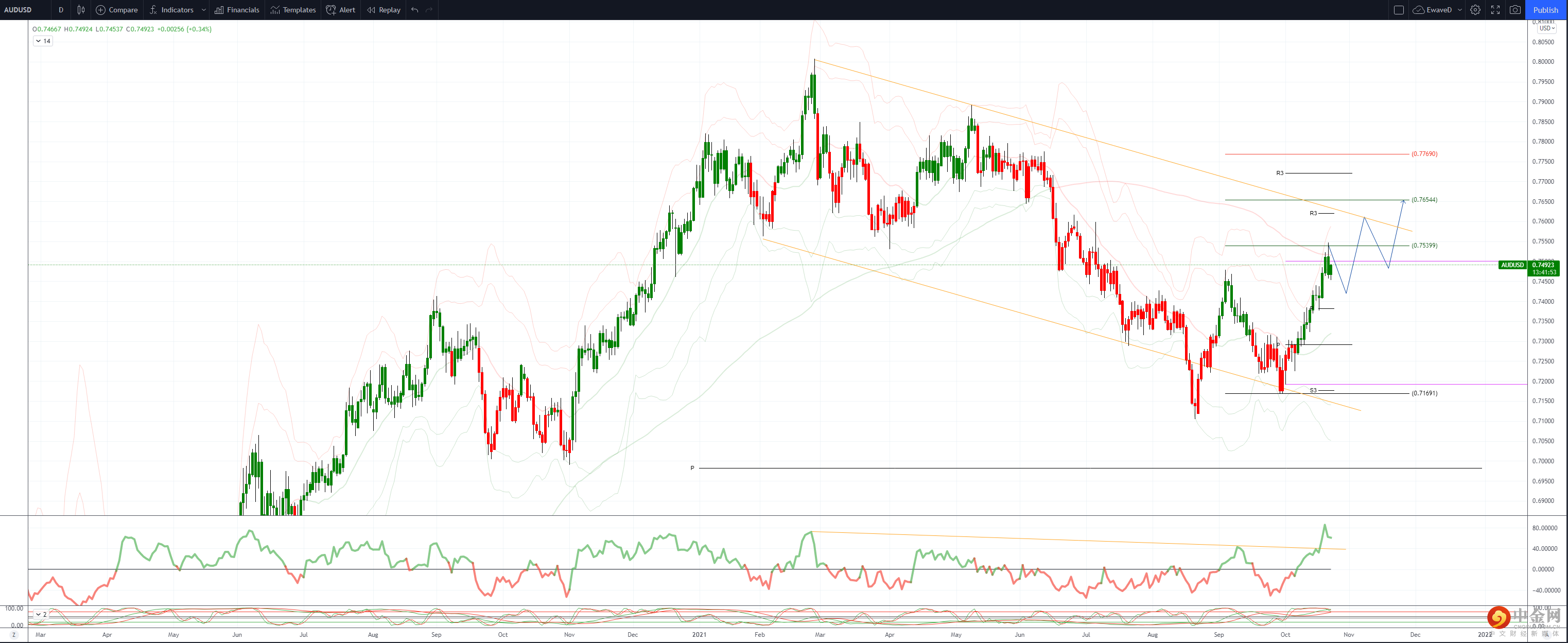 AUDUSD 日内偏差:低于 0.75 看跌 高于看涨