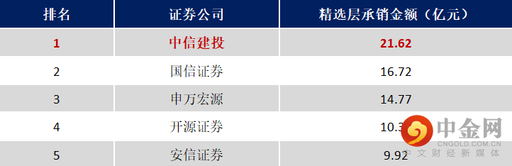 截至2021年9月5日,中信建投证券完成保荐精选层公开发行项目9家,市场排名第1。累计精选层公开发行融资金额21.62亿元,市场排名第1。