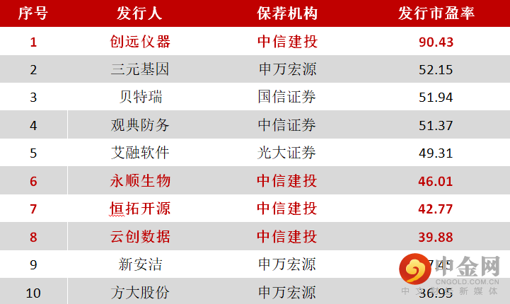 首批公开发行企业共32家,中信建投保荐发行7家,发行家数位于行业第一。其中创远仪器发行市盈率90.43倍,发行市盈率位于首批精选层企业第一。