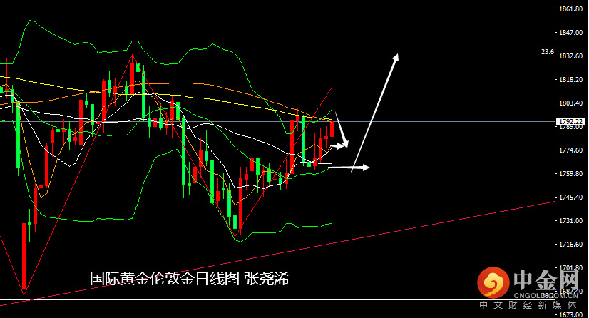 再加上美债10年期收益率的本周冲高回落收线,也鉴定了下周的一些走低预期,这将对金价是利好的。另外,美指虽周尾震荡止跌,但在跌破中轨支撑后,回落力度仍未减弱,故此整体看,金价在下周仍有买盘力量。