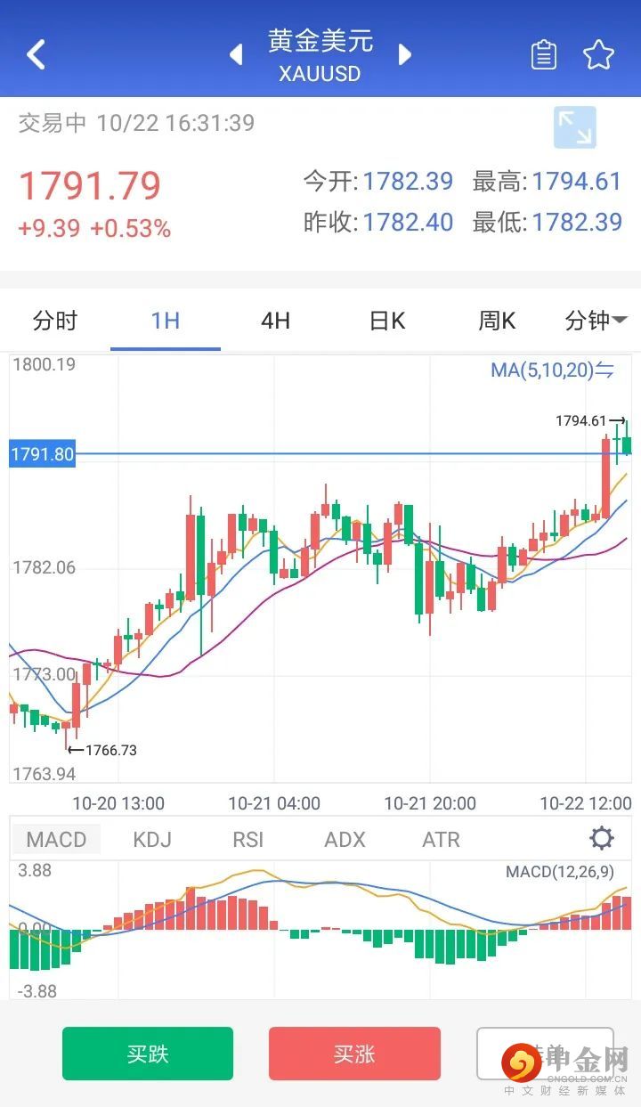 周四现货黄金在1780关口附近震荡,美盘中短线下挫逾6美元,随后收复跌幅,最终收涨0.07%。本交易日亚市盘中,现货黄金温和上涨,亚市尾盘,金价短线快速拉升,突破1790美元/盎司。美元指数亚市持续承压,美元走软利好推动金价上涨。