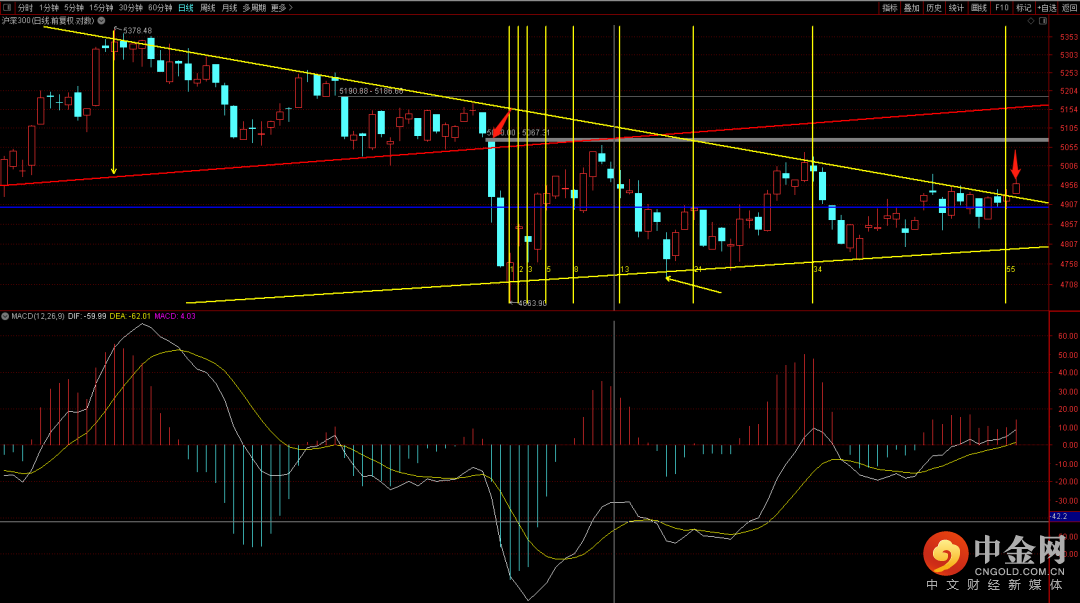 沪深300跳空向上突破了下降趋势线,后续如果确认站稳大概率会向上回补前期的跳空缺口。而向下如果出现再次跌破,后续调整就可能延长。