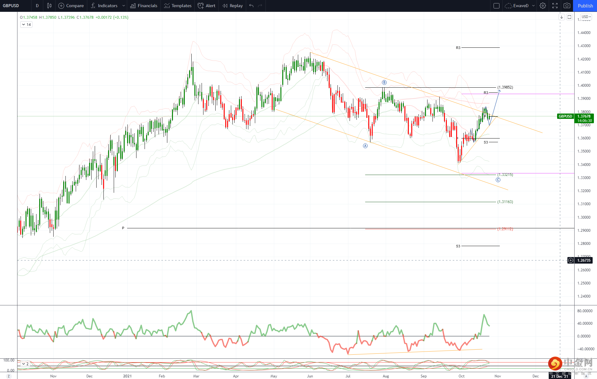 GBPUSD 日内偏差:低于 1.37 看跌 高于看涨。