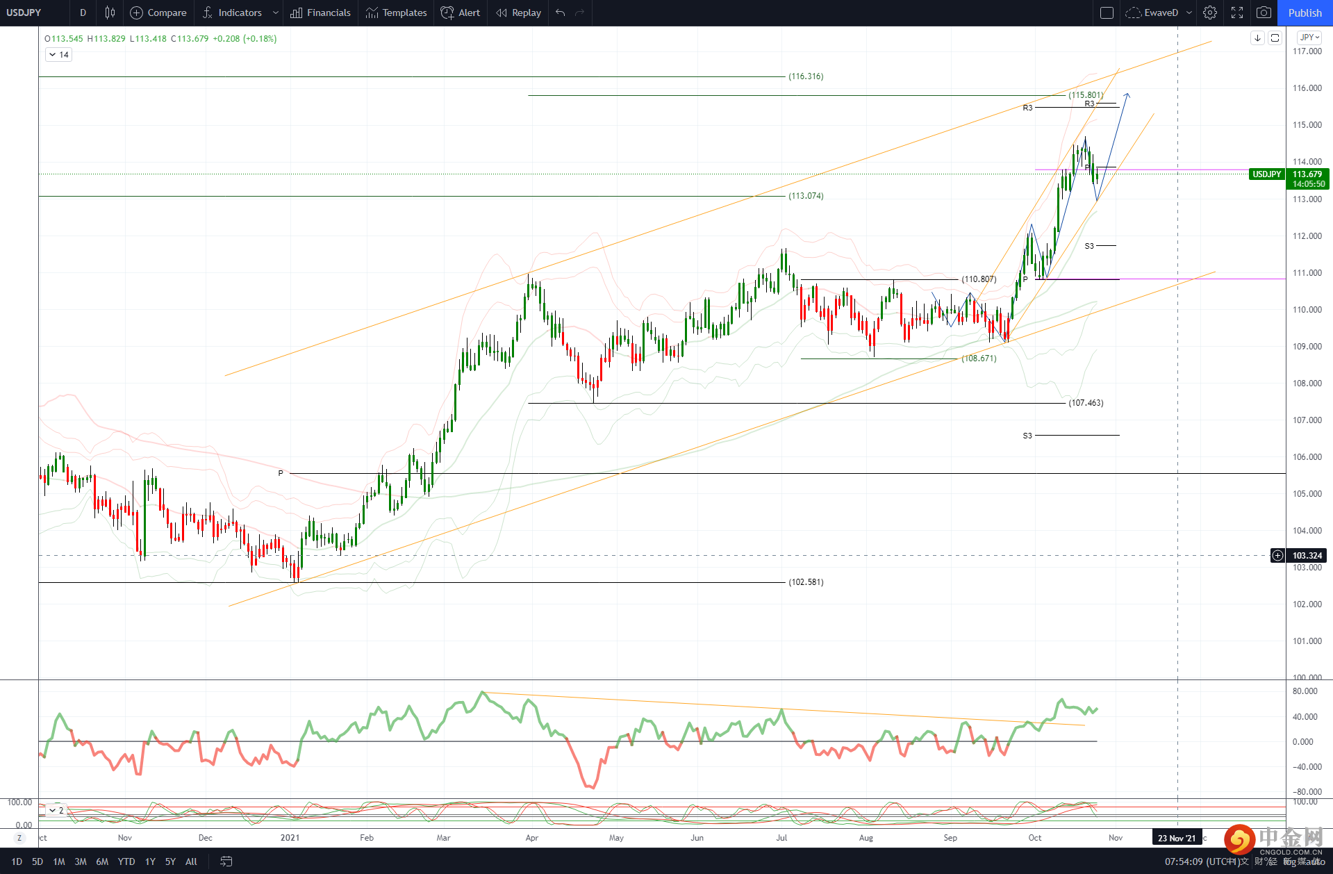 113.50/60 440MLN 和 114.00 480MLN 是周一收盘价