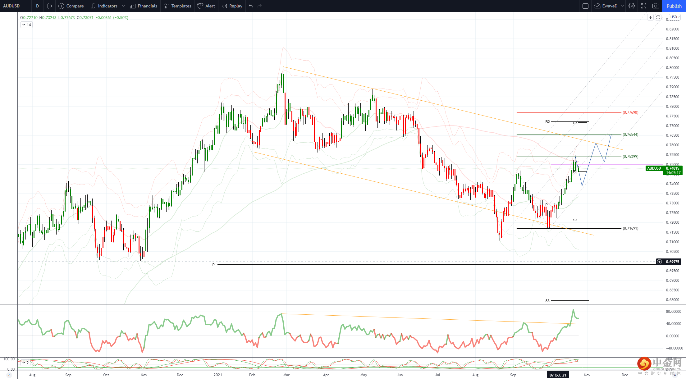 AUDUSD 日内偏差:低于 0.75 看跌 高于看涨