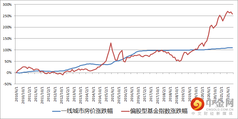 (1)根据新华社10月23日消息,第十三届全国人民代表大会常务委员会第三十一次会议决定:授权国务院在部分地区开展房地产税改革试点工作。投资房子、尤其是一线城市的房子,确实是过去10年收益非常高、性价比很好的理财方式,而选择偏股型基金,其实一点也不差,尤其是近年来严格执行“房住不炒”的政策,偏股型基金(下图红线)的累计涨幅达257.9%,对比一线城市平均房价涨幅是109.79% 。展望未来,我们都知道,经济转型、科技创新是大方向,而能助力科技创新的是资本市场,不是大房子。