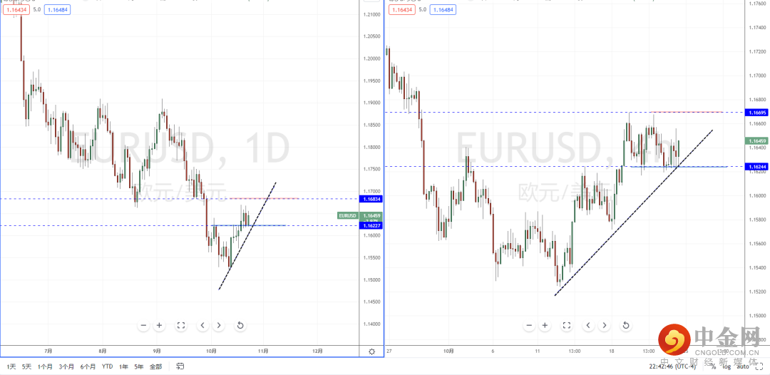 欧美天图:短期价格在冲击上方水平压制带1.16227附近继续承压,由于美元在关键位置止跌,使得欧美将继续走弱。从日内4小时级别,其趋势承压后继续回测支撑带1.15885附近。可适当关注价格在此附近的表现,如果破位下行,下方目标位置参考1.15428一带。
