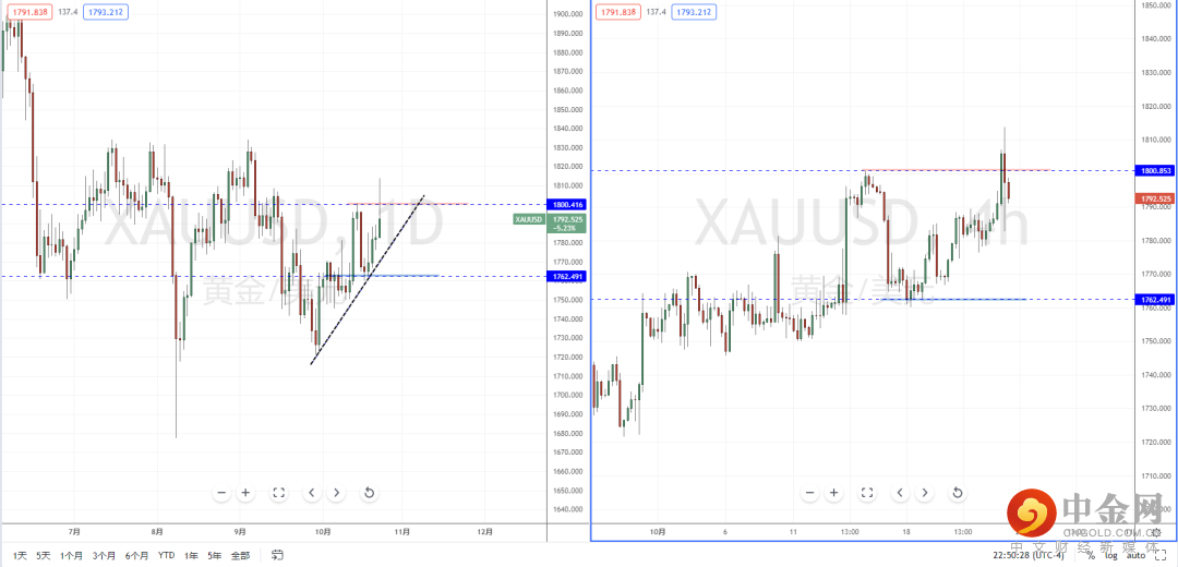 黄金天图:短期价格在触及上方水平压制带1800.416附近后大幅回落,但目前价格在测试下方水平支撑带1764.445附近有止跌迹象。从日内4小时级别,由于趋势表现比较极端,近期可关注行情修正后的表现。如果价格调整后起稳则可继续保持多头方向,但需要注意上方空间幅度。