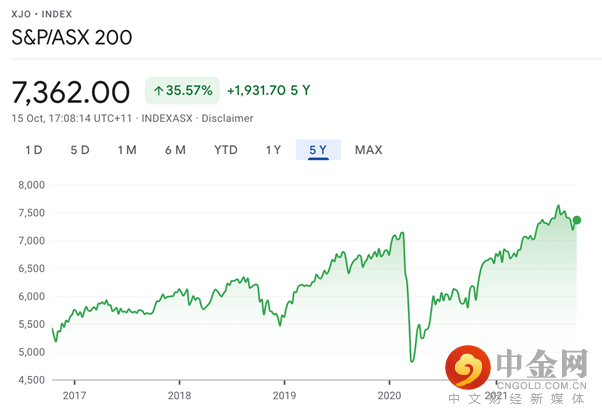 ASX200指数由标准普尔维护,被视为澳大利亚股票表现的基准。它基于 200 只最大的 ASX 上市股票,这些股票合计约占澳大利亚股票市值的 82%。在纽约股市普遍上涨、大型科技公司复苏以及基本金属、石油和黄金也上涨的情况下,澳大利亚股市近日开盘走高。澳大利亚东部时间2021年10月15日上午 7 点,ASX 期货上涨 46 点,涨幅 0.6% 至 7335。