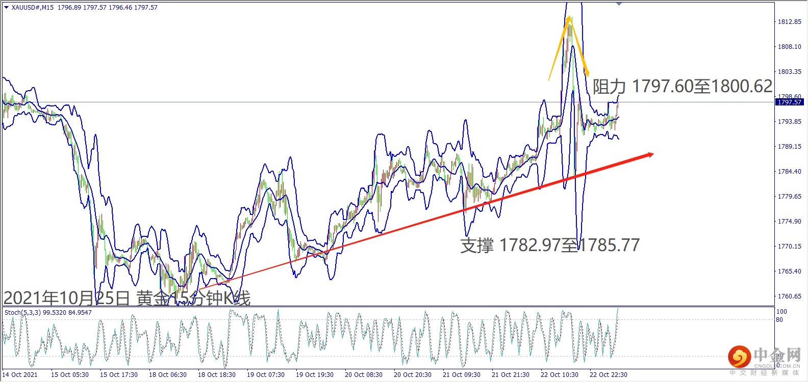 上周五(22日)受到美元指数下跌,以及英国新冠确诊人数连续两天约在5万人,造成避险黄金价格从早上低点上涨约30美元。晚间美联储主席鲍威尔称通胀可能会持续至明年,造成市场预期美国2022年中加息利好美元上涨,造成黄金急跌吞噬30美元涨势。但是鲍威尔语末提及尽快缩减购债造成美元下跌,也让黄金反弹至1790美元上方整理。