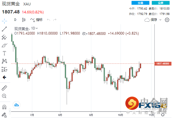 COMEX 12月黄金期货收涨0.6%,报1806.80美元/盎司。