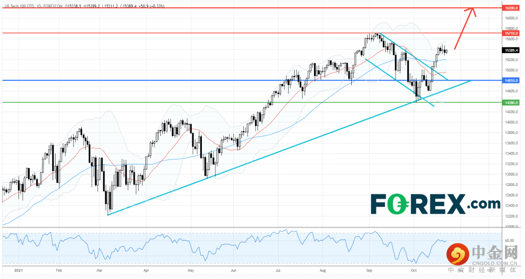 以科技股为主的美国纳斯达克100指数由10月初的低点展开反弹,目前距离历史高位约2%。同时,该指数与其他美国的主要指数均连升3周。