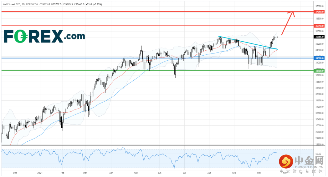 上周五,美国道琼斯工业平均指数收市价报35,677点,创历史新高,同时该指数已经连升3周。自10月中起各美国企业开始公布其第3季度业绩,投资者对财报大致上满意并因此推升指数价格至历史高位。