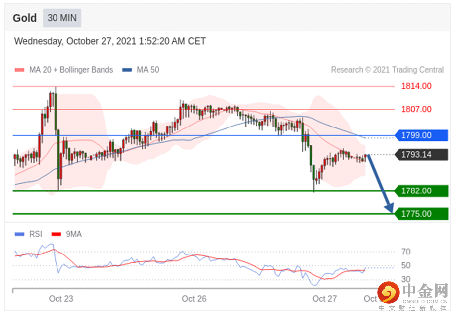 在 1799.00 上,看涨,目标价位定在 1807.00 ,然后为 1814.00。